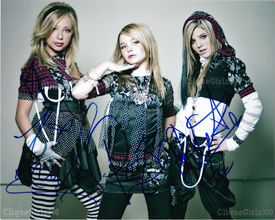 Hey Everyone! So a few months back I came across these signed photos online for purchase. Of course as the fan I am I couldn't let these photos get away so I purchased them. I am not 100% sure when these photos were signed. The back of both of them say June 2008 (I think that's when the photos were printed) so they possibly could have been from around the time they opened for Demi Lovato? We'll never really know when they are from but they were definitely signed when they were Clique Girlz not Clique (as it says Clique Girlz on the back and they signed them with their star, crown, and heart symbols). Along with the signed photos were 2 of the pink holographic Clique Girlz stickers. Make sure to check them out under the cut.